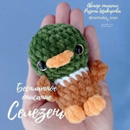 Этот милый утенок ручной работы, выполненный в технике амигуруми, притягивает взгляды своей мягкой текстурой и гармоничным сочетанием зеленого и коричневого цве...