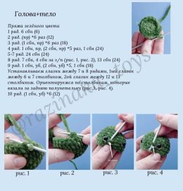Очаровательный образ этого вязального чуда захватывает внимание. Яркие розовые и зеленые цвета, вместе с большими выразительными глазками, делают игрушку неотра...