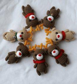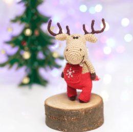Вязаные новогодние лосики:) Описание. Автор: Олюшка Лукошкина Описание автора: Голова: 1р. - 2 вп -6 сбн (6 сбн в кольцо амигуруми) 2р. - 6 приб. = 12 сбн 3р. -...
