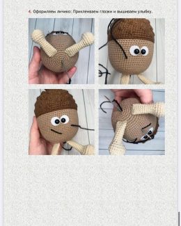 Сокращения: СБН – столбик без накида П – прибавка У – убавка ГОЛОВА Телесный цвет: 1: 6СБН в кольцо амигуруми (6) 2: 6П (12) 3: (1СБН, 1П) – 6 раз (18) 4: (2СБН...