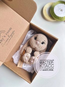 Эта рукодельная игрушка выполнена в нежных бежевых тонах, идеально подойдет для детской комнаты. Уникальный стиль амигуруми подчеркивает внимательность к деталя...
