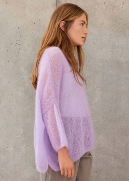 Этот свитер выполнен из мягкого и пушистого мохера, который придаёт изделию лёгкость и тепло. Уникальный акцент — ажурный узор в виде крупных листьев, расположе...