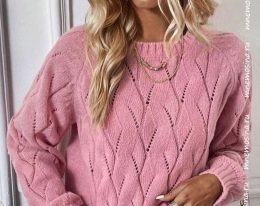 Вязанный свитер выполнен с уникальным узором из крупных ажурных ромбов, внутри которых расположены изящные листочки, создающие эффект воздушности и легкости. Ос...