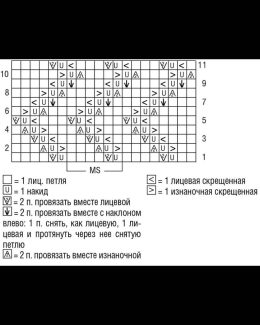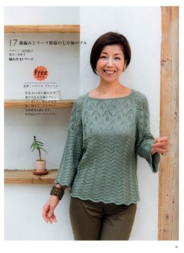 Изящный пуловер, связанный спицами с уникальным сочетанием узоров: верхняя часть выполнена в виде листьев, а нижняя — волнистым рельефным рисунком. Особенностью...