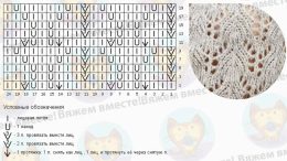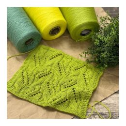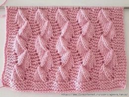 Этот вязанный узор с выразительными объемными листьями создаёт эффект живой текстуры благодаря чередованию лицевых и изнаночных петель с аккуратными ажурными пр...