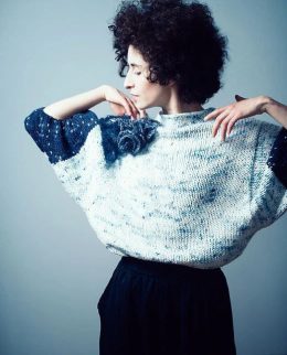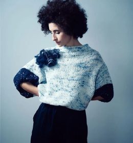 Этот свитер поражает своей уникальной вязкой с эффектом меланжа и выразительным объемным цветком на плече. Рукава с контрастной темной отделкой и слегка приспущ...