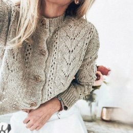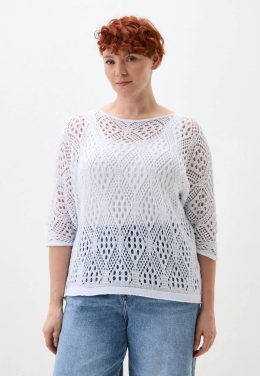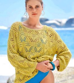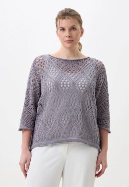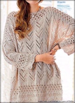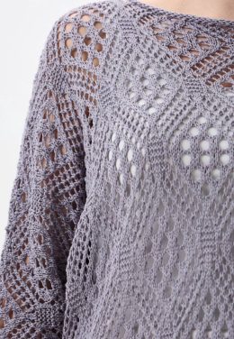 Этот воздушный джемпер выполнен спицами с изысканным ажурным узором, напоминающим листья и веера, что придает изделию особую легкость и изящество. Свободный сил...