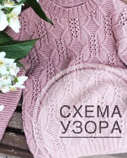Этот нежно-розовый свитер выполнен с изысканным рельефным узором в виде переплетенных листьев, дополненных ажурными вертикальными полосами, создающими эффект ле...