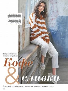 Универсальный пуловер в кофейных и сливочных тонах отлично сочетается с белыми брюками и кроссовками, добавляя комфорт и элегантность в повседневный гардероб. О...