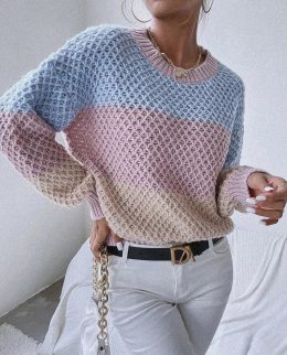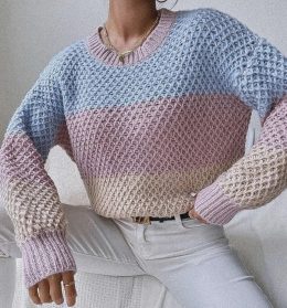 Уникальные ячейчатые узоры и контрастные цветовые блоки делают этот свитер настоящим акцентом в гардеробе, добавляя уют и стильность в любой образ. Фактурный уз...