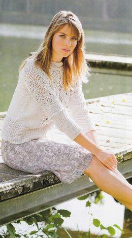 Пуловер реглан с ажурными полосами Размеры: 36/38 (40/42) 44/46 Ван потребуется: 450 (500) 550 г белой пряжи Organico (100% био-хпопка, 90 м/50 г): прямы...