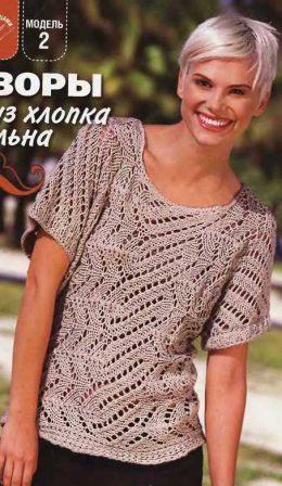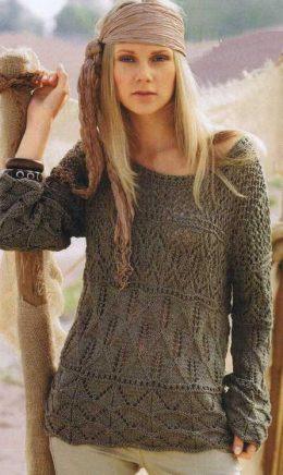 Ажурный пуловер взаный спицами Размеры: 36/38 (44/46) Вам потребуется • 400 (500) г серой пряжи Linarte (40% вискозы, 30% хлопка, 20% льна. 10% полиэстер...