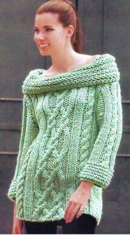 Джемпер с воротником - хомутом Размеры: 36/38 (40/42). Вам потребуется: 500 (550) г пряжи типа «Organico» от Lana Grossa (100% биохлопок, 90м/50г); спицы № 5; к...