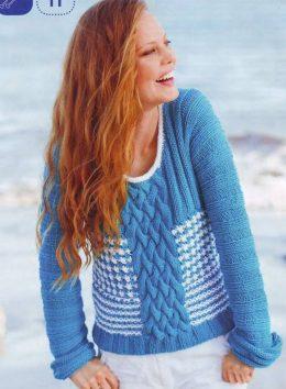 Вязання кофта спицами Размеры: 36/38 (40/42) 44/46. Для вязания пуловера Вам потребуется: • 450 (500) 550 г голубой пряжи Merino (100% мериносовой шерсти...
