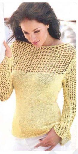 оригинальный вязаный пуловер с желтыми клетками Размеры: 38/40 (42/44) Вам потребуется: 150 (175) г цвета антрацита, 100 (125) г светло-серой и 25 г желтой пряж...