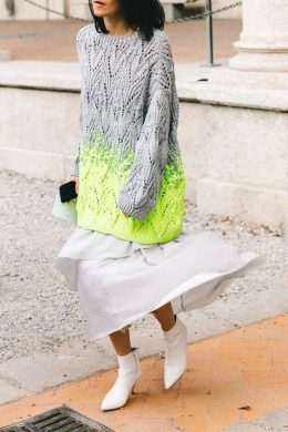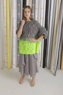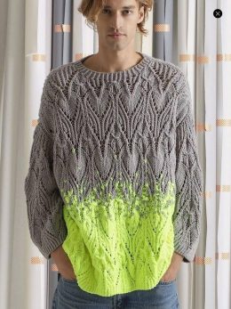 Очаровательный свитер с эффектным переходом цвета от серого к яркому неоновому желтому, выполненный из толстых нитей с выразительным ажурным узором и объемными...