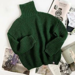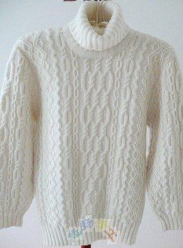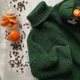 Объемный свитер крупной вязки с высоким воротником, выполненный спицами из толстой пряжи. Уникальная текстура создается за счет сочетания рельефных петель, что...