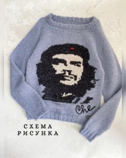 Этот свитер привлекает внимание благодаря детализированному изображению Че Гевары, выполненному в технике интарсия. Интересно, что портрет дополнен характерной...