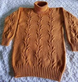 Знаете ли вы, что оранжевый цвет ассоциируется с энергией и теплом? Этот вязаный свитер с косами и высоким горлом создан для уютных вечеров. Узор, напоминающий...