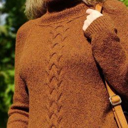 Этот тёплый коричневый свитер согреет не только тело, но и душу! Сложный узор спереди напоминает о вечерах у камина, а мягкая вязка заставит забыть о всех осенн...