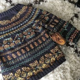 Этот очаровательный ручной вязанный свитер покоряет своим сложным узором и богатой цветовой палитрой. Мастерски выполненное изделие сочетает в себе гармонию тем...