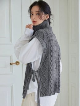 Вы когда-нибудь видели такой стильный и уютный свитер без рукавов? Этот великолепный вязаный жилет выполнен с изящным узором из кос и ромбов, что добавляет ему...