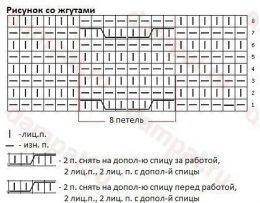 Мужской пуловер фасона «реглан» украшен рисунком со жгутами. Описание мужского пуловера от дизайнера Pat Menchini переведено из журнала “The Knitter”. Размеры:...