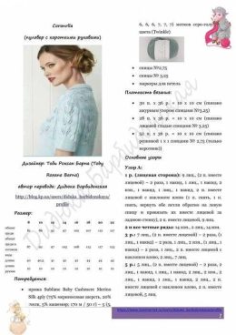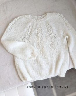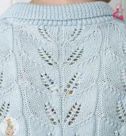 Ажурный узор вяжется вдоль выреза горловины переда и спинки, а также дополняет самую верхнюю часть рукава вдоль оката. Смотрится очень красиво! Среди всех прочи...