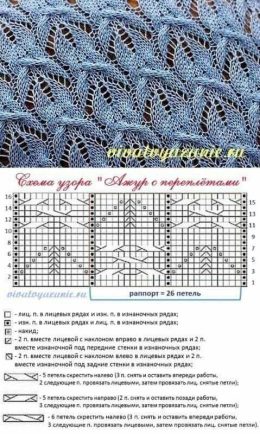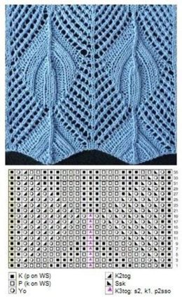 Узор из ажурных кос. Схема. Вяжем с @knitiru