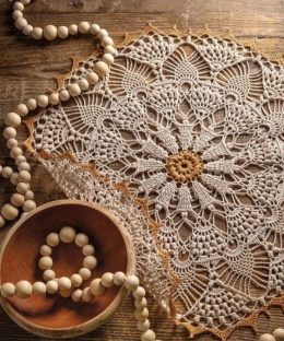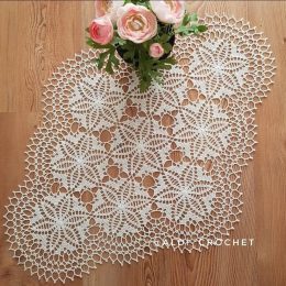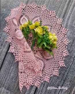 Эта изящная салфетка, связанная крючком, поражает своей сложной структурой и утонченным узором с объемными листьями. Центральная часть выполнена в виде цветочно...