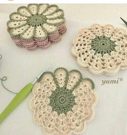 Эти вязаные крючком салфетки с уникальным сочетанием нежно-зеленого и кремового цветов создают эффект лепестков, придавая изделию трехмерность и элегантность. О...