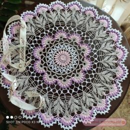 Эта изысканная салфетка выполнена в технике крючкового вязания с использованием нежных оттенков сиреневого и светло-серого цвета. Уникальность изделия заключает...