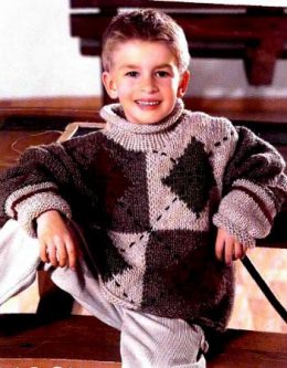 Детский пуловер с ромбами Размеры: 116/122 (128/134) 140/146. Для вязания детского пуловера Вам потребуется: • 200 (250) 300 г коричневой, 150 г пряжи цвета экр...