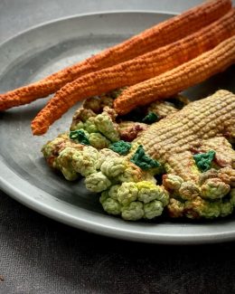 Каждый элемент, от яиц до брокколи, тщательно проработан, что придаёт ему реалистичность и оригинальность. Использование ярких и насыщенных цветов делает это из...