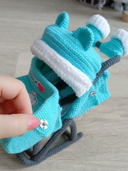 Эти милые изделия украшены забавными ушками, что добавляет им игривости и уникальности. Мягкая пряжа обеспечивает комфорт и тепло, а аккуратная вязка создает ст...