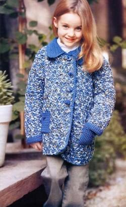 Жакет детский на пуговицах МАТЕРИАЛЫ 600 г меланжевой пряж средней толщины (100% акри/ в серо-бело-голубой гамм€ 50 г пряжи темнотолубог цвета, 4 кнопки,...
