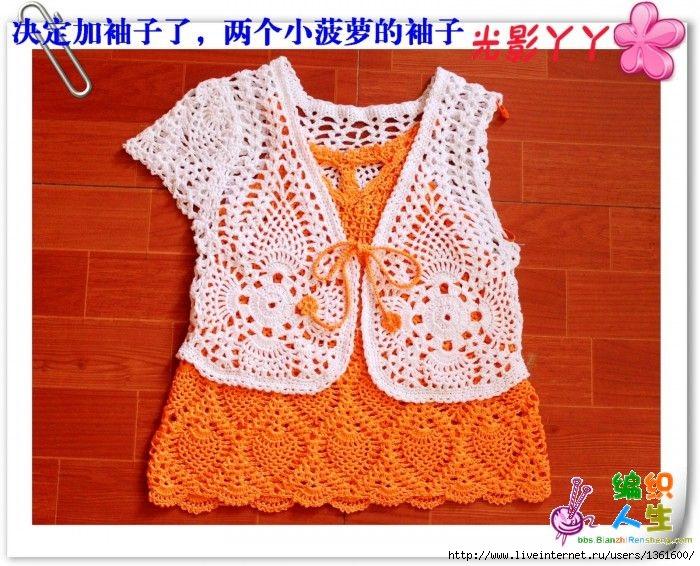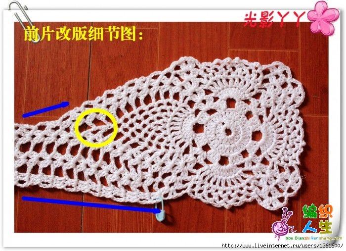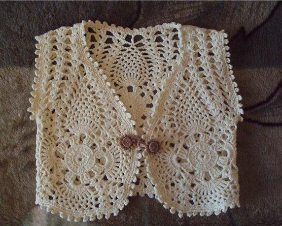 Жакет вязание крючком МАТЕРИАЛЫ 100 г пряжи (100% акрил) белого цвета, 3 пуговицы-жемчужины, немного лентовидной пряжи для вышивки. КРЮЧОК № 2,5 и спицы...