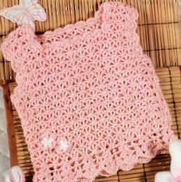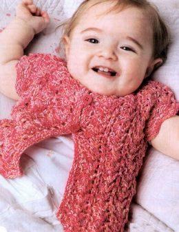 Ажурный топ с кружевной каймой для малыша Размер: 3/6 месяцев Вам потребуется: 60 г розовой пряжи (100 % мерсеризованный хлопок, 400 м/100 г); немного бе...