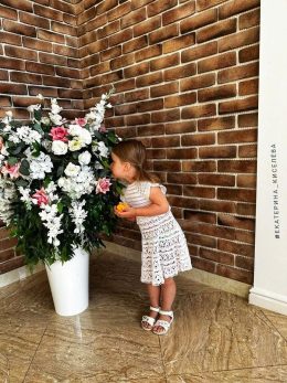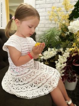 Милое платье с изысканным кружевным узором и аккуратными рюшами, создающими игривый образ. Уникальные детали — цветные вставки и нежные воланы, которые придают...