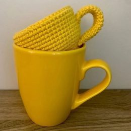 Эта вязаная кружка напоминает уютное гнездышко для вашего утреннего чая. Снаружи - нежно-зелёная оболочка, внутри - белоснежная подкладка. Может, она и не удерж...