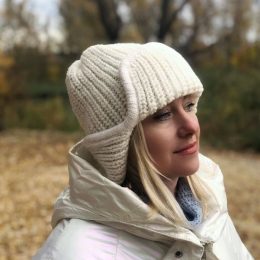 Эта забавная шапка-ушанка, связанная спицами, не только согреет в холодные дни, но и добавит нотку игривости в ваш образ. Забавные «ушки» и мягкие, объемные пет...