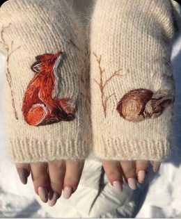 Эти варежки – настоящие шерстяные произведения искусства! Кажется, стоит надеть их, и лесные звери оживут прямо на ваших руках. Лиса выглядит так, будто только...