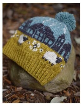 Эта уютная вязаная шапка, вдохновлённая сельским пейзажем, согреет вас в холодные дни. Очаровательные овечки и домики, изображённые на ней, добавляют игривость...