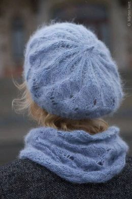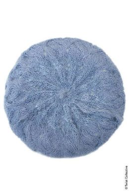 На фоне серого пальто, нежно-голубой вязаный берет и шарф выглядят особенно ярко. Мягкая пушистая текстура и изящный узор привлекают внимание к этому комплекту....