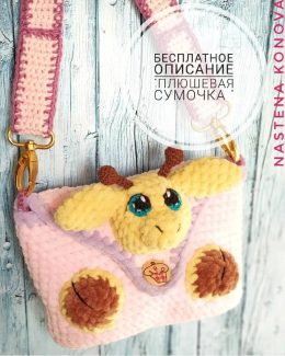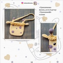 Ярко-желтая мордочка забавного существа контрастирует с нежно-розовой сумкой. Изюминка изделия — выразительные голубые глаза и забавные рожки. ✅ Сумочка жирафик...