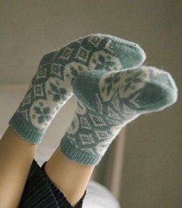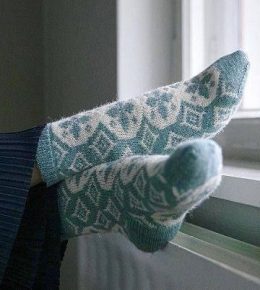 Эти носки с неожиданным узором из снежинок и геометрических форм создают атмосферу комфорта. Нежная бирюзовая и белая пряжа добавляют свежести и лёгкости, превр...