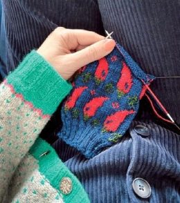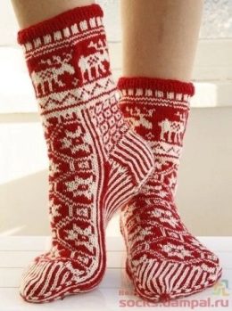 Очаровательный образ вязаных носков с яркими красными цветами на голубом фоне. Эти носочки привлекают внимание своим узором и создают теплое настроение, идеальн...