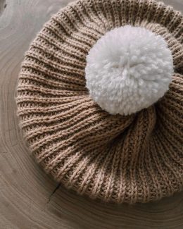 Желаем, чтобы эта уютная шапка согревала вас в холодные дни! Теплый коричневый цвет изделия прекрасно сочетается с пушистым белым помпоном, придавая ему игривый...