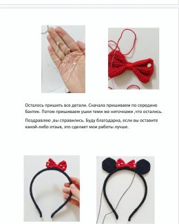 Какой милый ободок получается, а самое главное, что связать сможет даже новичок. 🌿Ободок Минни от автора @_mayaamy