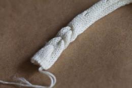 Обыкновенный вязаный шнур, скрученный по спирали в круг, аккуратно связанный достаточно толстой и крепкой ниткой, сверху - обвязанная пуговица. Даже хвостик не...